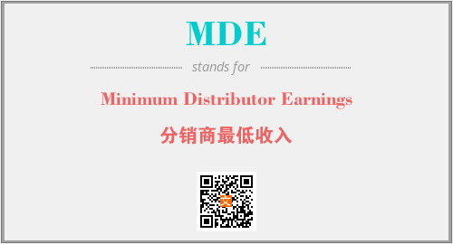以上为Minimum Distributor Earnings英文缩略词MDE的中文解释,以及该英文缩写在英语的流行度、分类和应用领域方面的信息。