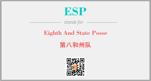 英文缩略词“ESP”经常作为“Eighth And State Posse”的英文缩写来使用,中文表示:“第八和州队”。本文将详细介绍英文缩写词ESP所代表英文单词,其对应的中文拼音、详细解释以及在英语中的流行度。此外,还有关于缩略词ESP的分类、应用领域及相关应用示例等。