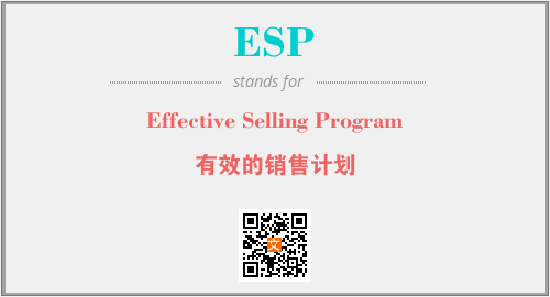 以上为Effective Selling Program英文缩略词ESP的中文解释,以及该英文缩写在英语的流行度、分类和应用领域方面的信息。