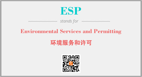 英文缩略词“ESP”经常作为“Environmental Services and Permitting”的英文缩写来使用,中文表示:“环境服务和许可”。本文将详细介绍英文缩写词ESP所代表英文单词,其对应的中文拼音、详细解释以及在英语中的流行度。此外,还有关于缩略词ESP的分类、应用领域及相关应用示例等。
