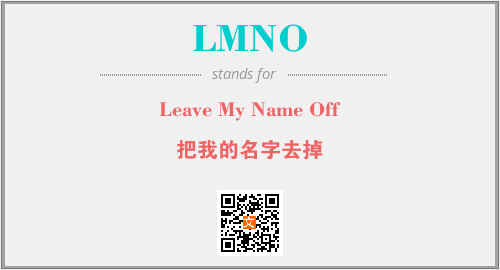 以上为Leave My Name Off英文缩略词LMNO的中文解释,以及该英文缩写在英语的流行度、分类和应用领域方面的信息。