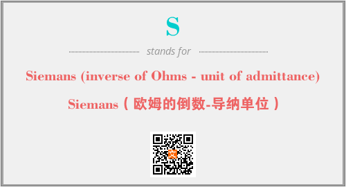 上述内容是“Siemans (inverse of Ohms - unit of admittance)”作为“S”的缩写,解释为“Siemans(欧姆的倒数-导纳单位)”时的信息,以及英文缩略词S所代表的英文单词,其对应的中文拼音、详细解释以及在英文中的流行度和相关分类、应用领域及应用示例等。