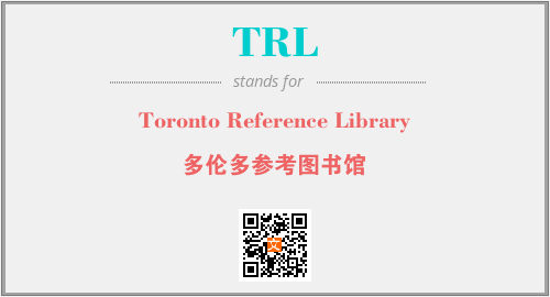 英文缩略词“TRL”经常作为“Toronto Reference Library”的英文缩写来使用,中文表示:“多伦多参考图书馆”。本文将详细介绍英文缩写词TRL所代表英文单词,其对应的中文拼音、详细解释以及在英语中的流行度。此外,还有关于缩略词TRL的分类、应用领域及相关应用示例等。