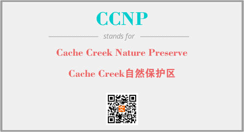 英文缩略词“CCNP”经常作为“Cache Creek Nature Preserve”的英文缩写来使用,中文表示:“Cache Creek自然保护区”。本文将详细介绍英文缩写词CCNP所代表英文单词,其对应的中文拼音、详细解释以及在英语中的流行度。此外,还有关于缩略词CCNP的分类、应用领域及相关应用示例等。