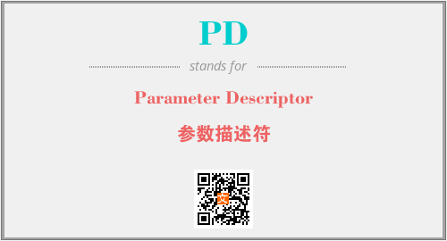 上述内容是“Parameter Descriptor”作为“PD”的缩写,解释为“参数描述符”时的信息,以及英文缩略词PD所代表的英文单词,其对应的中文拼音、详细解释以及在英文中的流行度和相关分类、应用领域及应用示例等。