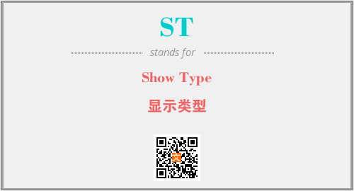 上述内容是“Show Type”作为“ST”的缩写,解释为“显示类型”时的信息,以及英文缩略词ST所代表的英文单词,其对应的中文拼音、详细解释以及在英文中的流行度和相关分类、应用领域及应用示例等。