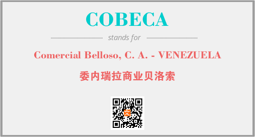 上述内容是“Comercial Belloso, C. A. - VENEZUELA”作为“COBECA”的缩写,解释为“委内瑞拉商业贝洛索”时的信息,以及英文缩略词COBECA所代表的英文单词,其对应的中文拼音、详细解释以及在英文中的流行度和相关分类、应用领域及应用示例等。
