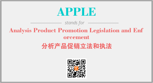 上述内容是“Analysis Product Promotion Legislation and Enforcement”作为“APPLE”的缩写,解释为“分析产品促销立法和执法”时的信息,以及英文缩略词APPLE所代表的英文单词,其对应的中文拼音、详细解释以及在英文中的流行度和相关分类、应用领域及应用示例等。