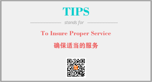 上述内容是“To Insure Proper Service”作为“TIPS”的缩写,解释为“确保适当的服务”时的信息,以及英文缩略词TIPS所代表的英文单词,其对应的中文拼音、详细解释以及在英文中的流行度和相关分类、应用领域及应用示例等。