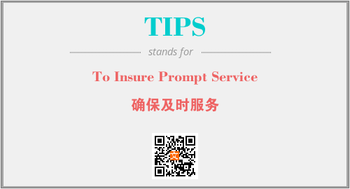 英文缩略词“TIPS”经常作为“To Insure Prompt Service”的英文缩写来使用,中文表示:“确保及时服务”。本文将详细介绍英文缩写词TIPS所代表英文单词,其对应的中文拼音、详细解释以及在英语中的流行度。此外,还有关于缩略词TIPS的分类、应用领域及相关应用示例等。