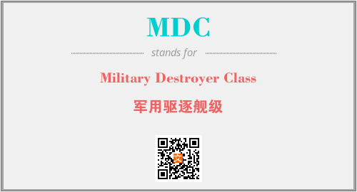 以上为Military Destroyer Class英文缩略词MDC的中文解释,以及该英文缩写在英语的流行度、分类和应用领域方面的信息。