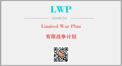 英文缩略词“LWP”经常作为“Limited War Plan”的英文缩写来使用,中文表示:“有限战争计划”。本文将详细介绍英文缩写词LWP所代表英文单词,其对应的中文拼音、详细解释以及在英语中的流行度。此外,还有关于缩略词LWP的分类、应用领域及相关应用示例等。