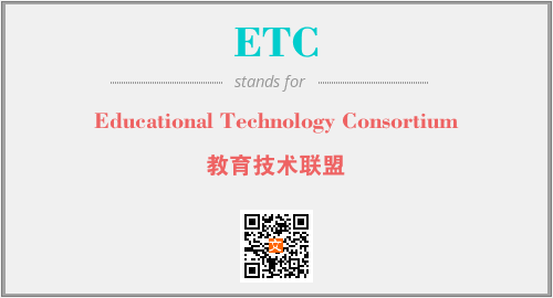 以上为Educational Technology Consortium英文缩略词ETC的中文解释,以及该英文缩写在英语的流行度、分类和应用领域方面的信息。