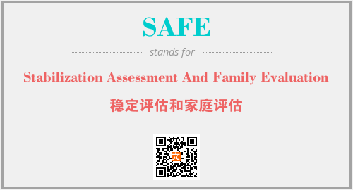 英文缩略词“SAFE”经常作为“Stabilization Assessment And Family Evaluation”的英文缩写来使用,中文表示:“稳定评估和家庭评估”。本文将详细介绍英文缩写词SAFE所代表英文单词,其对应的中文拼音、详细解释以及在英语中的流行度。此外,还有关于缩略词SAFE的分类、应用领域及相关应用示例等。