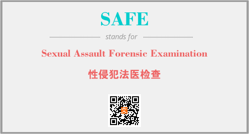 上述内容是“Sexual Assault Forensic Examination”作为“SAFE”的缩写,解释为“性侵犯法医检查”时的信息,以及英文缩略词SAFE所代表的英文单词,其对应的中文拼音、详细解释以及在英文中的流行度和相关分类、应用领域及应用示例等。