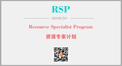 英文缩略词“RSP”经常作为“Resource Specialist Program”的英文缩写来使用,中文表示:“资源专家计划”。本文将详细介绍英文缩写词RSP所代表英文单词,其对应的中文拼音、详细解释以及在英语中的流行度。此外,还有关于缩略词RSP的分类、应用领域及相关应用示例等。