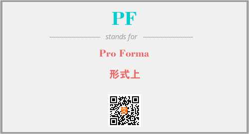 上述内容是“Pro Forma”作为“PF”的缩写,解释为“形式上”时的信息,以及英文缩略词PF所代表的英文单词,其对应的中文拼音、详细解释以及在英文中的流行度和相关分类、应用领域及应用示例等。