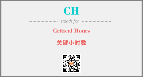 英文缩略词“CH”经常作为“Critical Hours”的英文缩写来使用,中文表示:“关键小时数”。本文将详细介绍英文缩写词CH所代表英文单词,其对应的中文拼音、详细解释以及在英语中的流行度。此外,还有关于缩略词CH的分类、应用领域及相关应用示例等。