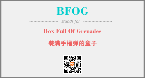 以上为Box Full Of Grenades英文缩略词BFOG的中文解释,以及该英文缩写在英语的流行度、分类和应用领域方面的信息。