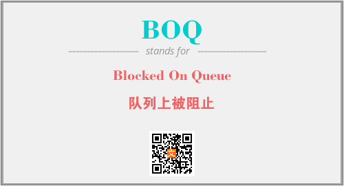 上述内容是“Blocked On Queue”作为“BOQ”的缩写,解释为“队列上被阻止”时的信息,以及英文缩略词BOQ所代表的英文单词,其对应的中文拼音、详细解释以及在英文中的流行度和相关分类、应用领域及应用示例等。