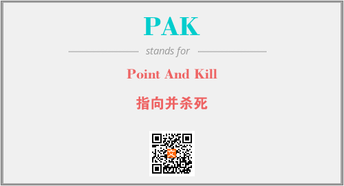 上述内容是“Point And Kill”作为“PAK”的缩写,解释为“指向并杀死”时的信息,以及英文缩略词PAK所代表的英文单词,其对应的中文拼音、详细解释以及在英文中的流行度和相关分类、应用领域及应用示例等。