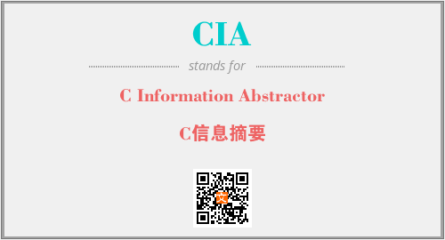 英文缩略词“CIA”经常作为“C Information Abstractor”的英文缩写来使用,中文表示:“C信息摘要”。本文将详细介绍英文缩写词CIA所代表英文单词,其对应的中文拼音、详细解释以及在英语中的流行度。此外,还有关于缩略词CIA的分类、应用领域及相关应用示例等。