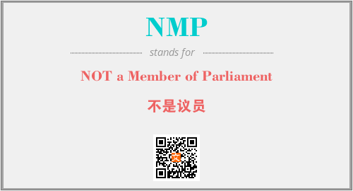 以上为NOT a Member of Parliament英文缩略词NMP的中文解释,以及该英文缩写在英语的流行度、分类和应用领域方面的信息。