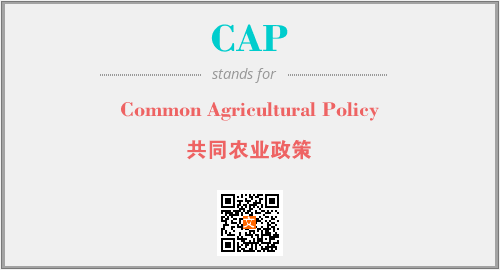 上述内容是“Common Agricultural Policy”作为“CAP”的缩写,解释为“共同农业政策”时的信息,以及英文缩略词CAP所代表的英文单词,其对应的中文拼音、详细解释以及在英文中的流行度和相关分类、应用领域及应用示例等。