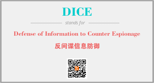 上述内容是“Defense of Information to Counter Espionage”作为“DICE”的缩写,解释为“反间谍信息防御”时的信息,以及英文缩略词DICE所代表的英文单词,其对应的中文拼音、详细解释以及在英文中的流行度和相关分类、应用领域及应用示例等。