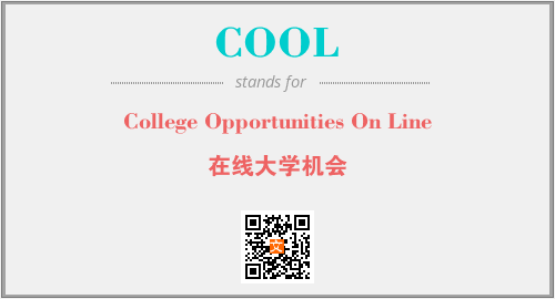 英文缩略词“COOL”经常作为“College Opportunities On Line”的英文缩写来使用,中文表示:“在线大学机会”。本文将详细介绍英文缩写词COOL所代表英文单词,其对应的中文拼音、详细解释以及在英语中的流行度。此外,还有关于缩略词COOL的分类、应用领域及相关应用示例等。