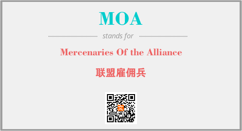 英文缩略词“MOA”经常作为“Mercenaries Of the Alliance”的英文缩写来使用,中文表示:“联盟雇佣兵”。本文将详细介绍英文缩写词MOA所代表英文单词,其对应的中文拼音、详细解释以及在英语中的流行度。此外,还有关于缩略词MOA的分类、应用领域及相关应用示例等。
