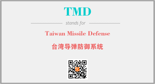 上述内容是“Taiwan Missile Defense”作为“TMD”的缩写,解释为“台湾导弹防御系统”时的信息,以及英文缩略词TMD所代表的英文单词,其对应的中文拼音、详细解释以及在英文中的流行度和相关分类、应用领域及应用示例等。