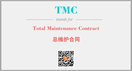 英文缩略词“TMC”经常作为“Total Maintenance Contract”的英文缩写来使用,中文表示:“总维护合同”。本文将详细介绍英文缩写词TMC所代表英文单词,其对应的中文拼音、详细解释以及在英语中的流行度。此外,还有关于缩略词TMC的分类、应用领域及相关应用示例等。