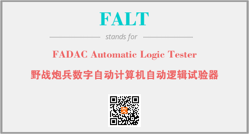 英文缩略词“FALT”经常作为“FADAC Automatic Logic Tester”的英文缩写来使用,中文表示:“野战炮兵数字自动计算机自动逻辑试验器”。本文将详细介绍英文缩写词FALT所代表英文单词,其对应的中文拼音、详细解释以及在英语中的流行度。此外,还有关于缩略词FALT的分类、应用领域及相关应用示例等。