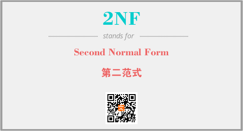 上述内容是“Second Normal Form”作为“2NF”的缩写,解释为“第二范式”时的信息,以及英文缩略词2NF所代表的英文单词,其对应的中文拼音、详细解释以及在英文中的流行度和相关分类、应用领域及应用示例等。