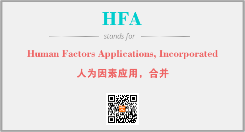 上述内容是“Human Factors Applications, Incorporated”作为“HFA”的缩写,解释为“人为因素应用,合并”时的信息,以及英文缩略词HFA所代表的英文单词,其对应的中文拼音、详细解释以及在英文中的流行度和相关分类、应用领域及应用示例等。