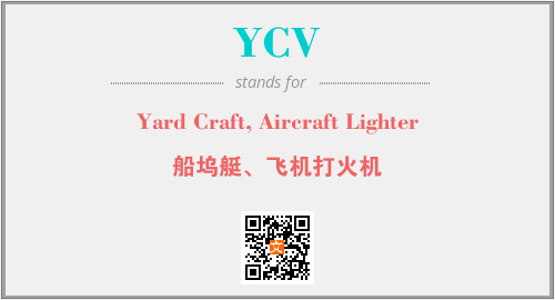 上述内容是“Yard Craft, Aircraft Lighter”作为“YCV”的缩写,解释为“船坞艇、飞机打火机”时的信息,以及英文缩略词YCV所代表的英文单词,其对应的中文拼音、详细解释以及在英文中的流行度和相关分类、应用领域及应用示例等。