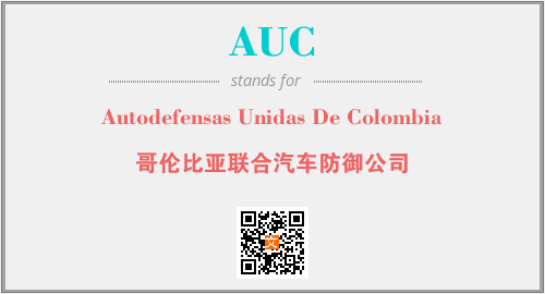 上述内容是“Autodefensas Unidas De Colombia”作为“AUC”的缩写,解释为“哥伦比亚联合汽车防御公司”时的信息,以及英文缩略词AUC所代表的英文单词,其对应的中文拼音、详细解释以及在英文中的流行度和相关分类、应用领域及应用示例等。