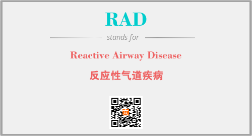 上述内容是“Reactive Airway Disease”作为“RAD”的缩写,解释为“反应性气道疾病”时的信息,以及英文缩略词RAD所代表的英文单词,其对应的中文拼音、详细解释以及在英文中的流行度和相关分类、应用领域及应用示例等。
