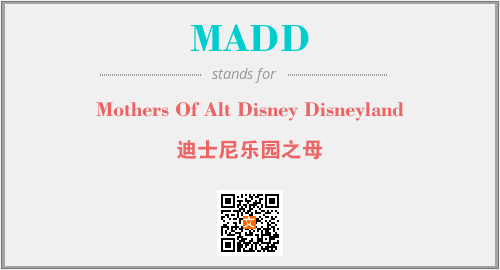 英文缩略词“MADD”经常作为“Mothers Of Alt Disney Disneyland”的英文缩写来使用,中文表示:“迪士尼乐园之母”。本文将详细介绍英文缩写词MADD所代表英文单词,其对应的中文拼音、详细解释以及在英语中的流行度。此外,还有关于缩略词MADD的分类、应用领域及相关应用示例等。