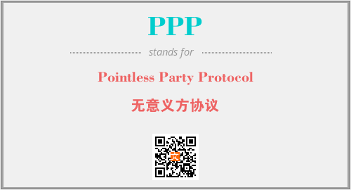 英文缩略词“PPP”经常作为“Pointless Party Protocol”的英文缩写来使用,中文表示:“无意义方协议”。本文将详细介绍英文缩写词PPP所代表英文单词,其对应的中文拼音、详细解释以及在英语中的流行度。此外,还有关于缩略词PPP的分类、应用领域及相关应用示例等。