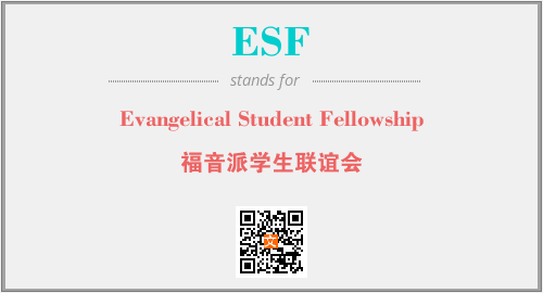 上述内容是“Evangelical Student Fellowship”作为“ESF”的缩写,解释为“福音派学生联谊会”时的信息,以及英文缩略词ESF所代表的英文单词,其对应的中文拼音、详细解释以及在英文中的流行度和相关分类、应用领域及应用示例等。