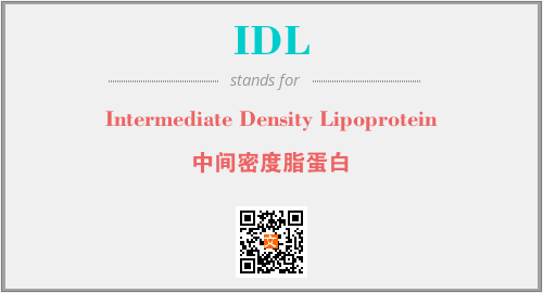 上述内容是“Intermediate Density Lipoprotein”作为“IDL”的缩写,解释为“中间密度脂蛋白”时的信息,以及英文缩略词IDL所代表的英文单词,其对应的中文拼音、详细解释以及在英文中的流行度和相关分类、应用领域及应用示例等。