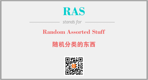英文缩略词“RAS”经常作为“Random Assorted Stuff”的英文缩写来使用,中文表示:“随机分类的东西”。本文将详细介绍英文缩写词RAS所代表英文单词,其对应的中文拼音、详细解释以及在英语中的流行度。此外,还有关于缩略词RAS的分类、应用领域及相关应用示例等。