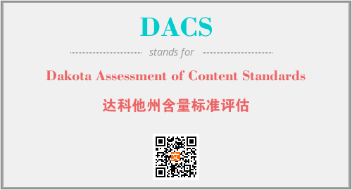 英文缩略词“DACS”经常作为“Dakota Assessment of Content Standards”的英文缩写来使用,中文表示:“达科他州含量标准评估”。本文将详细介绍英文缩写词DACS所代表英文单词,其对应的中文拼音、详细解释以及在英语中的流行度。此外,还有关于缩略词DACS的分类、应用领域及相关应用示例等。
