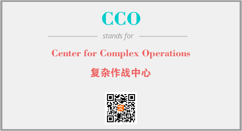 上述内容是“Center for Complex Operations”作为“CCO”的缩写,解释为“复杂作战中心”时的信息,以及英文缩略词CCO所代表的英文单词,其对应的中文拼音、详细解释以及在英文中的流行度和相关分类、应用领域及应用示例等。