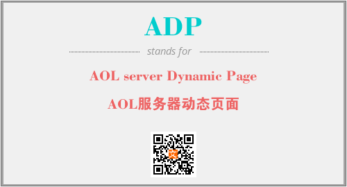 英文缩略词“ADP”经常作为“AOL server Dynamic Page”的英文缩写来使用,中文表示:“AOL服务器动态页面”。本文将详细介绍英文缩写词ADP所代表英文单词,其对应的中文拼音、详细解释以及在英语中的流行度。此外,还有关于缩略词ADP的分类、应用领域及相关应用示例等。