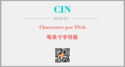 上述内容是“Characters per INch”作为“CIN”的缩写,解释为“每英寸字符数”时的信息,以及英文缩略词CIN所代表的英文单词,其对应的中文拼音、详细解释以及在英文中的流行度和相关分类、应用领域及应用示例等。