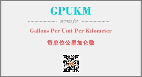 上述内容是“Gallons Per Unit Per Kilometer”作为“GPUKM”的缩写,解释为“每单位公里加仑数”时的信息,以及英文缩略词GPUKM所代表的英文单词,其对应的中文拼音、详细解释以及在英文中的流行度和相关分类、应用领域及应用示例等。