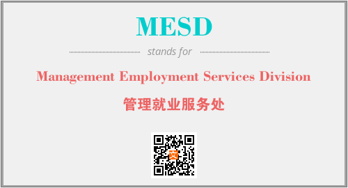 上述内容是“Management Employment Services Division”作为“MESD”的缩写,解释为“管理就业服务处”时的信息,以及英文缩略词MESD所代表的英文单词,其对应的中文拼音、详细解释以及在英文中的流行度和相关分类、应用领域及应用示例等。
